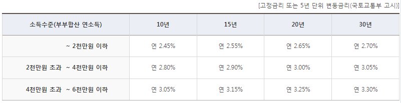 부부합산 연소득 6천만원 이하(생애최초 주택구입자, 2자녀이상 가구 또는 신혼가구는 연소득 7천만원 이하), 순자산가액 5.06억원 이하 무주택 세대주