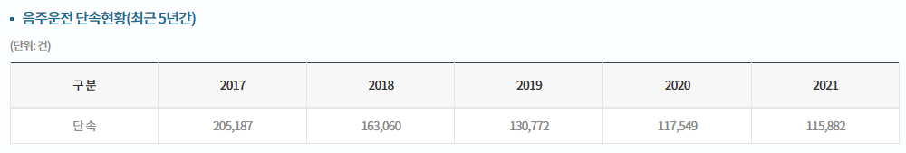 즐겁자고 마신 술이 독배가 되고, 다른 사람의 인생을 망치는 악순환이 계속되고 있다. 오늘 뉴스기사를 보니 화만나면 술을 먹고 습관적으로 음주운전을 하는 운전자의 차량을 압수했다는 기사를 접했다. 경찰들이 음주단속을 안하는 것도 아니다. 최근 5년간 음주운전 단속현황 자료도 찾아봤다. 21년 한해에만 115,882회를 실시했음에도 음주운전 사고는 줄어들지 않고 늘고 있으며 사망자와 부상자도 계속 증가하고 있다.