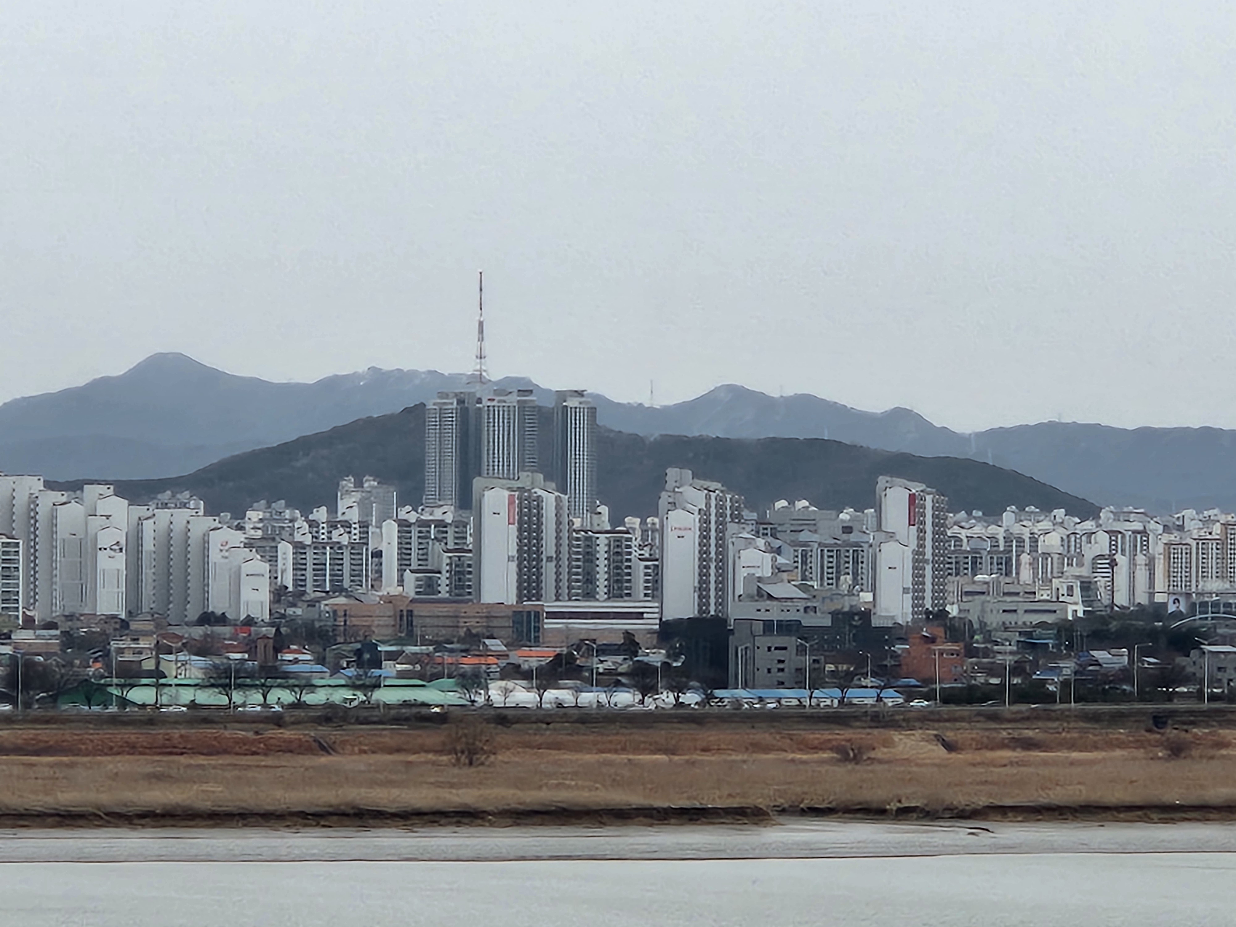 야생조류생태공원 전망대에 올라서 바라본 한강변 맞은편의 모습, 일산이다. 저기 아파트숲 뒤로는 북한산 언저리까지도 보여서 묘한 풍경화에 한참을 쳐다봤다. 이쪽은 내가 아는 동넨간, 저쪽은 내가 가본 곳인가, 저긴 어디였더라..
