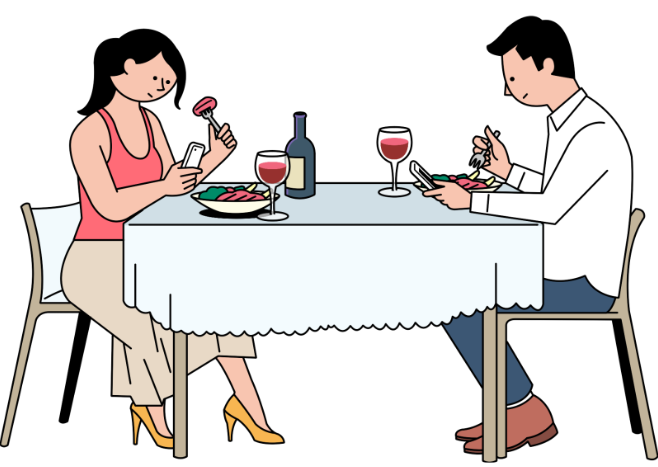 함께 식사할 때 휴대폰 등 전자기기를 사용하지 않으면 상당한 효과를 얻을 수 있다는 연구 결과가 점점 더 많이 발표되고 있다. 여러 연구에 따르면 식사 시간에 부모, 보호자, 자녀가 전자기기를 사용하는 경우 건강하지 않은 식습관을 형성하거나 비만이 될 위험이 높다. 기기에 정신을 뺏기면 배가 부르다는 것도 알 수없기 때문이다.