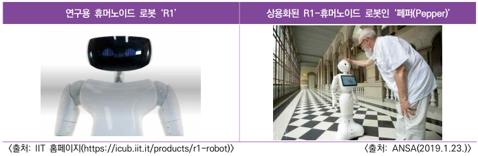 상용화된 R1-휴머노이드인 페퍼(Pepper)는 2019년 1월에 처음 이탈리아 산 조반니 로톤도 (Giovanni Rotondo) 병원에서 시범 적용되어 병동 관리, 환자 모니터링 등을 통해 응급 상황 발생 시 의료진에게 즉각 전달하는 체계를 갖추게 되었다.